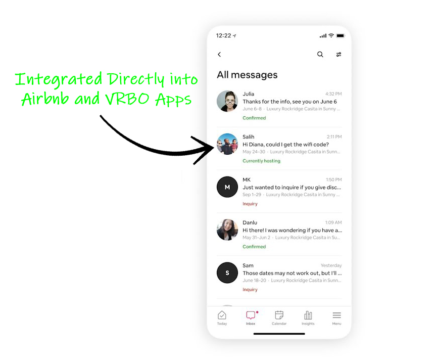 INNtellilgence.AI is synced with your Hostfully account to directly answer the common and uncommon questions your guests ask, directly inside of the Airbnb and VRBO apps. Not via email, or on your website (although this is available as well) but directly through the messenger aspects of the apps.